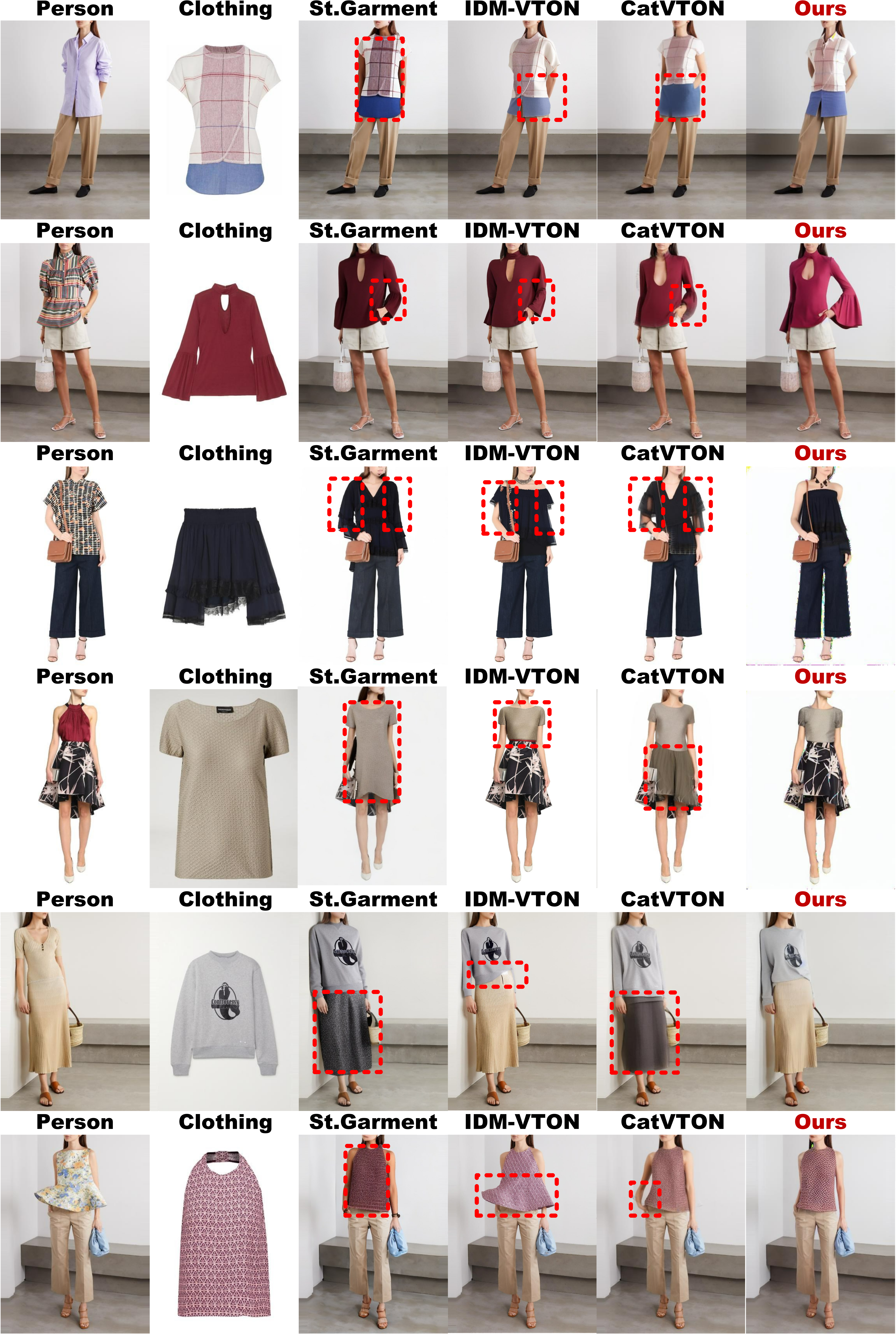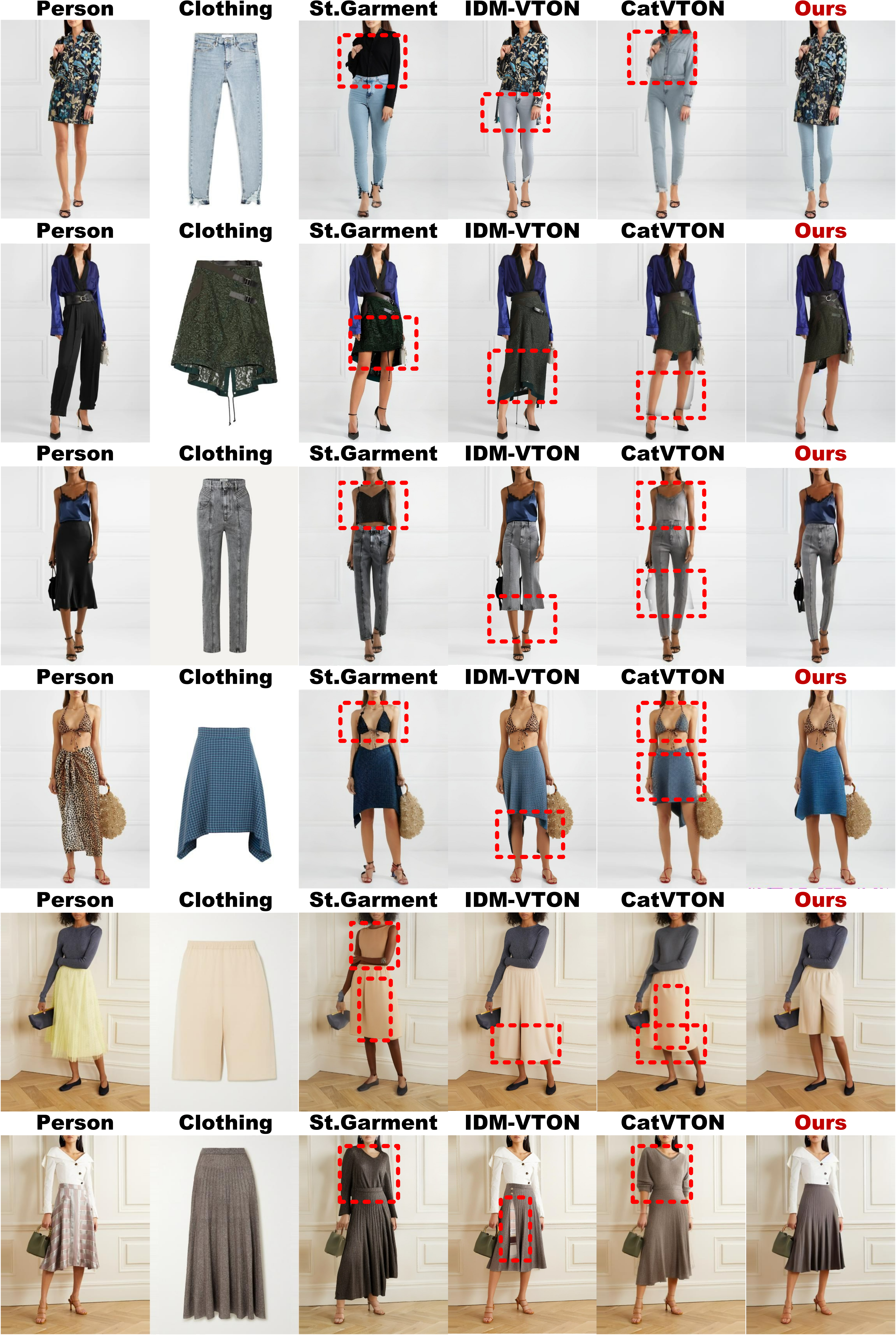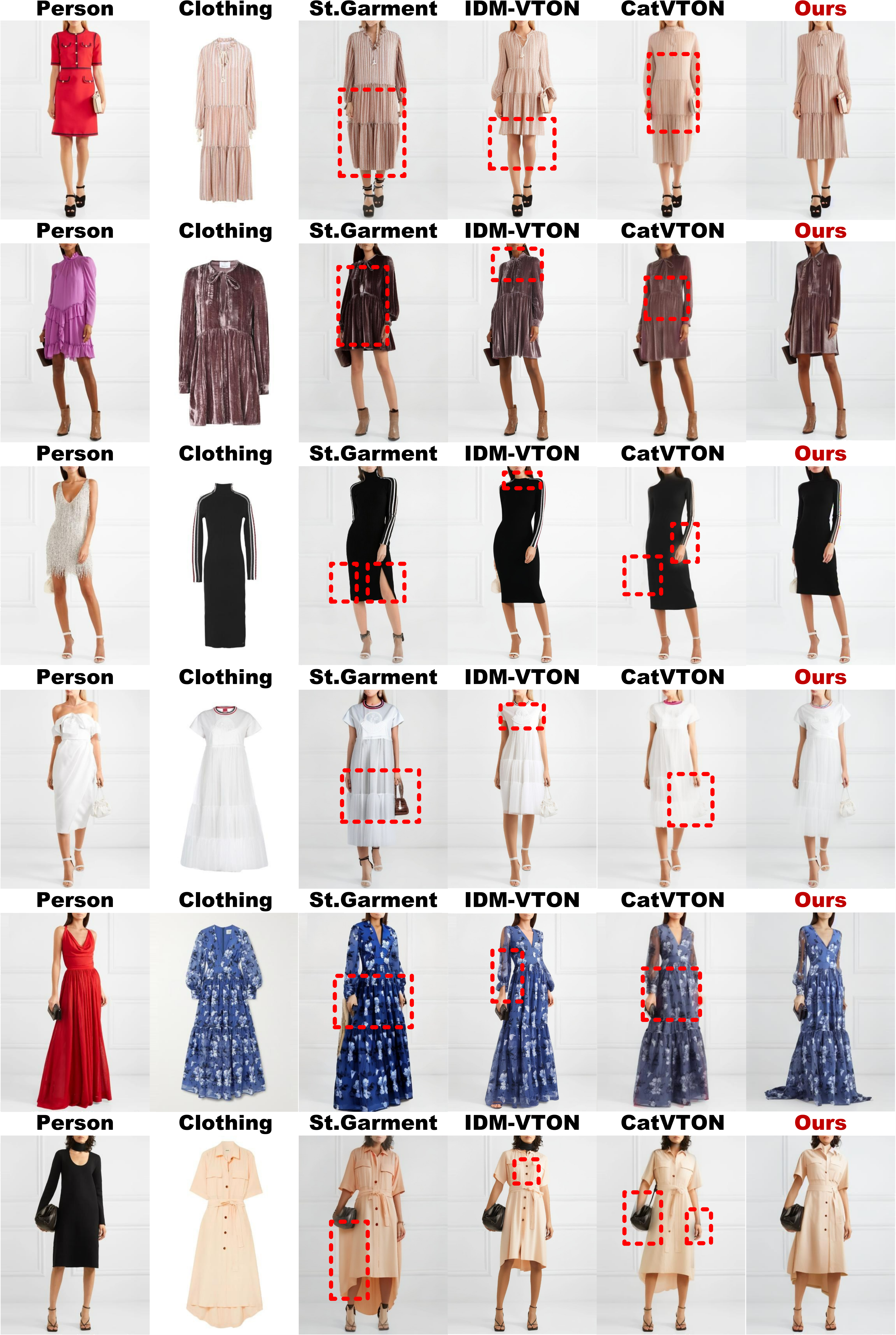 - Background Pre-Replacement – swaps the background before generation so the model never confuses clothes with body/background, suppressing inherent occlusions.